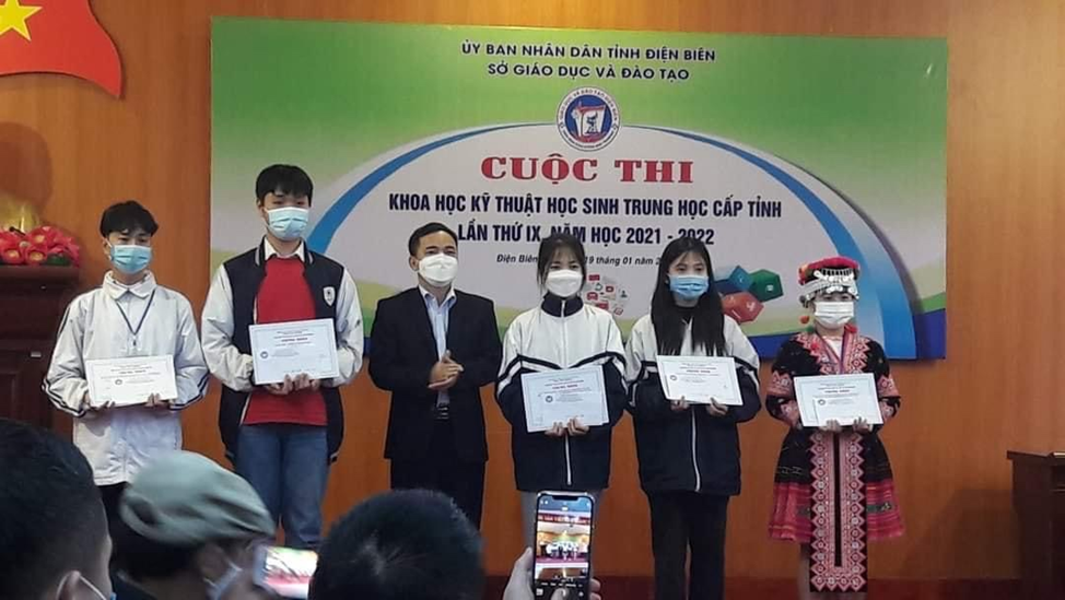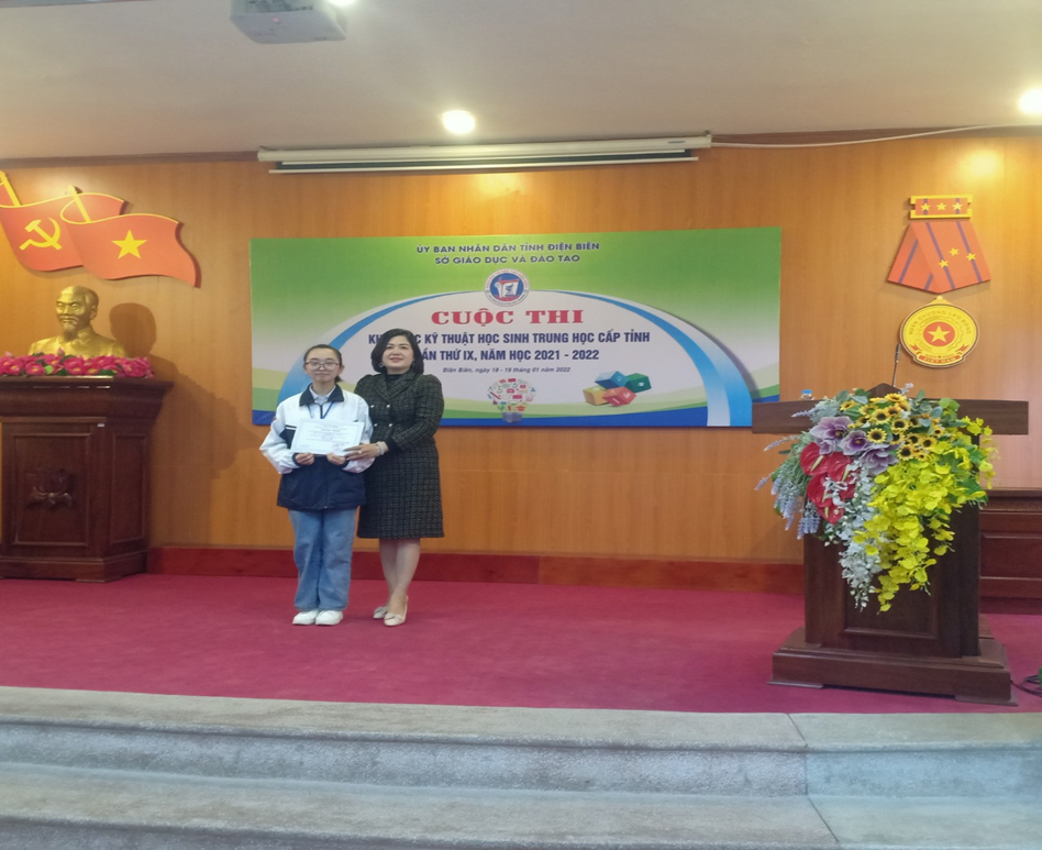 Phát huy thành tích đã đạt được trong các năm qua, khắc phục những khó khăn do ảnh hưởng của dịch bệnh Covid-19 năm học 2021-2022 trường tiếp tục tham gia Cuộc thi nghiên cứu KHKT dành cho HS trung học lần thứ IX, lần đầu tiên Sở GD&ĐT Điện Biên tổ chức Cuộc thi bằng hình thức trực tuyến tại 05 điểm cầu (giám khảo) và 43 điểm cầu tại các đơn vị dự thi (10 phòng GD&ĐT và 33 trường THPT, trường THCS&THPT) diễn ra từ ngày 18-19/01/2022,  Trường đã linh hoạt tổ chức thành công cuộc thi KHKT cấp cơ sở, lựa chọn ra 02 dự án đăng ký tham gia cuộc thi cấp tỉnh, cả 2 dự án đã vượt qua vòng thẩm định và là 02/71 dự án được Sở GD&ĐT chấm thi vòng 1 lựa chọn tham gia thi vòng 2 trực tuyến. 02 dự án dự thi do các cô giáo hướng dẫn và các em học sinh thực hiện, cụ thể: