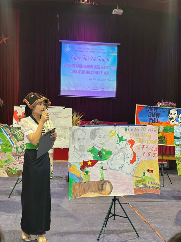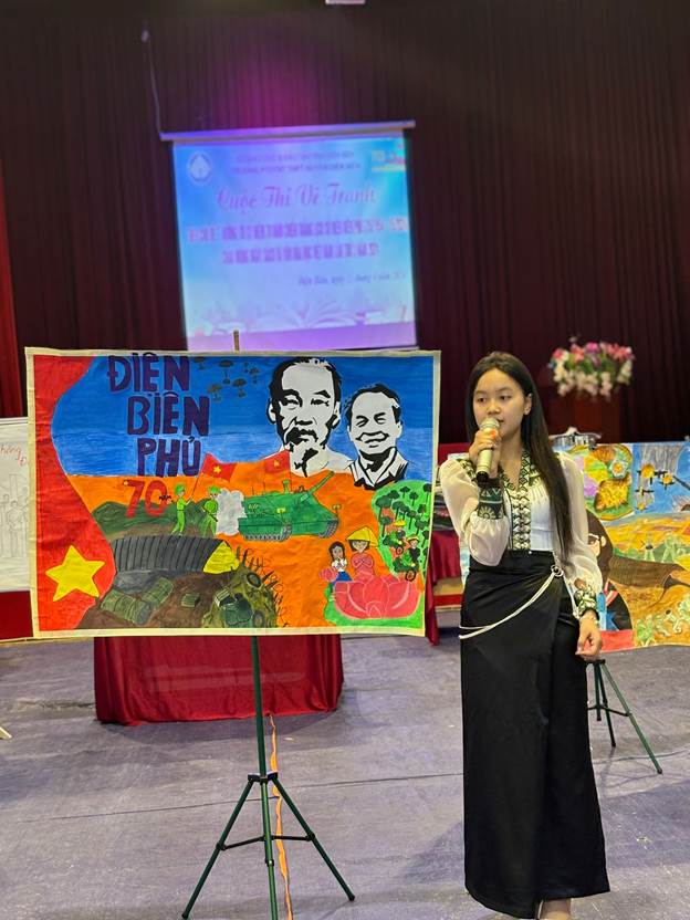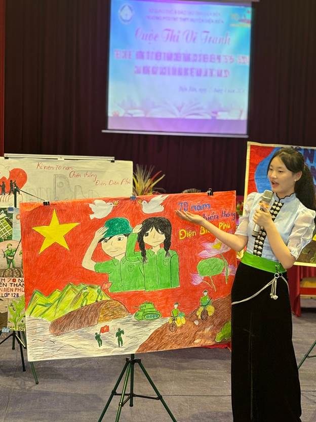 Ở phần thi vẽ tranh theo chủ đề 70 năm Chiến thắng lịch sử Điện Biên Phủ, với sự tham gia của 10 đội thi đến từ 3 khối lớp trong nhà trường, các đội thi phải chuẩn bị ý tưởng và vẽ tranh với nội dung theo chủ đề, cử đại diện mỗi đội thi sẽ thuyết trình chủ đề của bức tranh. Bằng sự thông minh, sáng tạo và khéo léo các em học sinh đã mang đến cuộc thi nhiều bức tranh hay và ý nghĩa như: