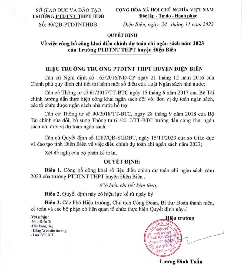 QUYẾT ĐỊNH CÔNG BỐ CÔNG KHAI ĐIỀU CHỈNH DỰ TOÁN CHI NGÂN SÁCH NĂM 2023