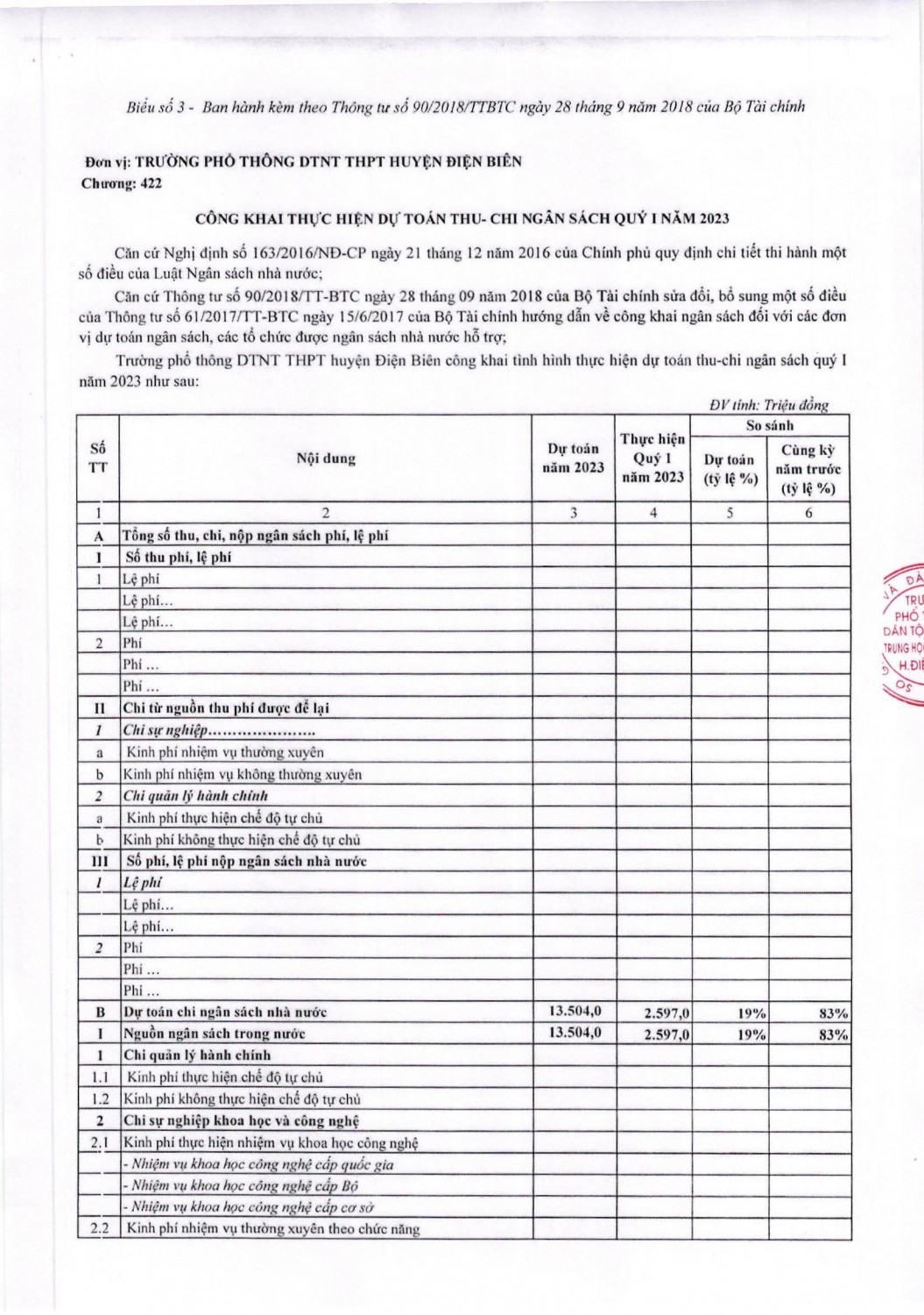 Quyết định công bố, công khai quyết toán quý I, năm 2023 chi tiết tại đây