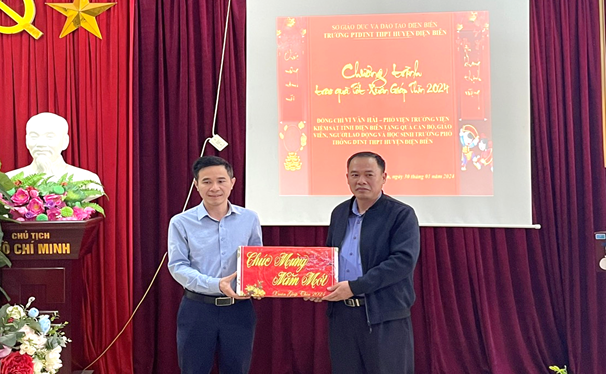 Tại buổi trao quà, đồng chí Vi Văn Hải đã ân cần thăm hỏi, gửi lời chúc tết đến toàn thể thầy cô giáo, cán bộ viên chức, người lao động và các em học sinh của trường PTDTNT THPT huyện Điện Biên và trao tặng 01 suất quà tết cùng với 100kg khoai tây cho nhà trường, 10 suất quà cho 10 học sinh có hoàn cảnh khó khăn.