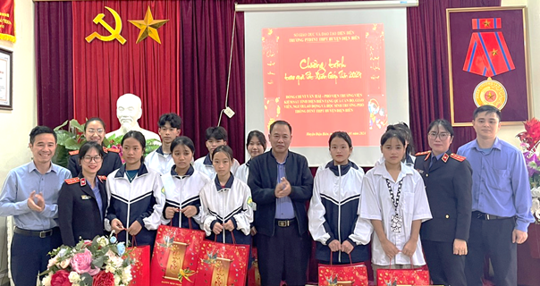 Đồng chí Vi Văn Hải – Phó Viện trưởng VKSND tỉnh Điện Biên, uỷ viên BCH Đảng uỷ đến tặng quà tết các thầy cô giáo, cán bộ viên chức, người lao động và các em học sinh của trường PTDTNT THPT huyện Điện Biên.