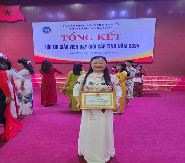 Ngày 20/3/2024, Sở GD&ĐT Điện Biên đã tổ chức Lễ tổng kết Hội thi giáo viên dạy giỏi cấp tỉnh năm 2024. Kết quả nhà trường đạt được: 5/5 giáo viên được công nhận giáo viên giỏi cấp tỉnh, đạt tỉ lệ 100%.