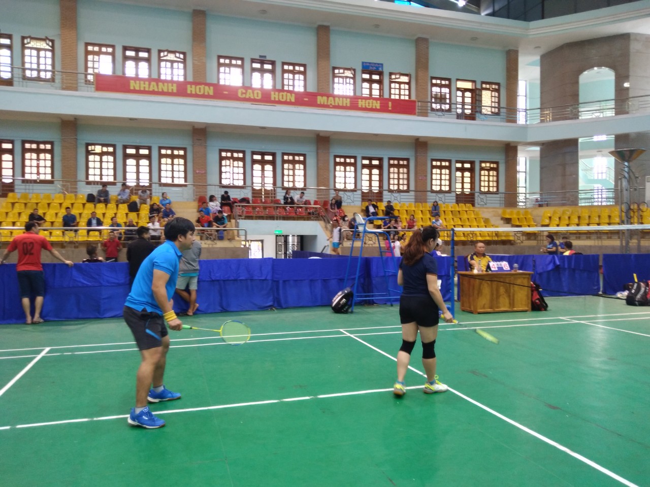 Hình ảnh: Đ/c Vũ Hải Quân GV Toán và Lương Thị Hà GV Văn tham gia thi môn cầu lông nội dung đôi nam nữ 36-45 tuổi