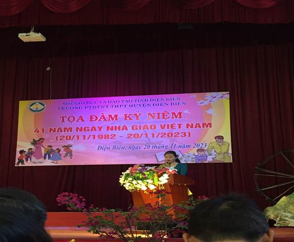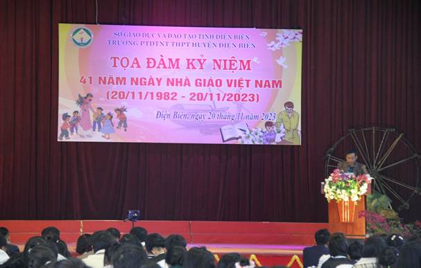 Dân tộc Việt Nam ta vốn có truyền thống “Tôn sư, trọng đạo” bởi người thầy đã góp phần hun đúc nên tâm hồn Việt Nam qua các thời kỳ, là cầu nối giữa quá khứ với hiện tại và tương lai dân tộc. người thầy được tôn vinh là: “Kỹ sư tâm hồn”, nghề dạy học là: “Nghề cao quý nhất trong những nghề cao quý, vì nó sáng tạo ra những con người sáng tạo”. Hoà chung với khí thế tưng bừng, phấn khởi của ngành giáo dục cả nước kỷ niệm 41 năm Ngày Nhà giáo Việt Nam (20/11/1982 – 20/11/2023). Thực hiện kế hoạch năm học và được sự đồng ý của chi ủy, chi bộ, BGH. Ngày 20/11/2023 Trường PTDTNT THPT huyện Điện Biên long trọng tổ chức lễ kỷ niệm 41 năm Ngày Nhà giáo Việt Nam để tôn vinh các nhà giáo và những người đang công tác trong môi trường giáo dục.