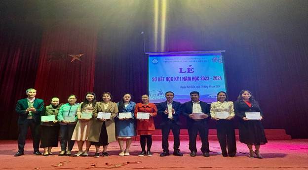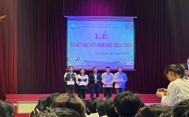 Học kỳ I năm học 2023-2024, mặc dù có nhiều thay đổi về nhân sự, cơ sở vật chất nhà trường còn thiếu thốn, xuống cấp nhưng nhà trường đã luôn tích cực, chủ động, sáng tạo và có phương án kịp thời, đúng đắn khắc phục khó khăn, hoàn thành tốt các chỉ tiêu, nhiệm vụ đề ra: Tổ chức tuyển sinh, công tác dạy và học, tham gia các kỳ thi, hội thi đạt kết quả khá tốt. Tuyển sinh vào 10 đạt 141/141 HS đạt 100% chỉ tiêu Sở GĐĐT giao; có 29 lượt học sinh đạt giải trong Kỳ thi chọn học sinh giỏi cấp tỉnh (01 giải Nhì, 13 giải Ba, 15 giải Khuyến khích); có 02 sản phẩm đăng ký dự thi KHKT cấp tỉnh, đạt 02 giải Ba; Nhà trường có 10 lớp với 346 học sinh. Trong đó 328/346 (94.8%) học sinh xếp loại học lực (HT) TB (Đ) trở lên (khá, giỏi (T) 186/346 chiếm tỉ lệ 53.8%), 338/346 học sinh xếp loại hạnh kiểm (RL) từ TB trở lên đạt 97,7% (Tốt, Khá 328/346 chiếm tỉ lệ 94.8%). Bên cạnh đó nhà trường tổ chức thành công nhiều hội thi: Hội thi “Giai điệu tuổi hồng”, nhảy Flashmob, trình diễn trang phục dân tộc, làm video tri ân thầy cô,…; tham gia Hội thao ngành GDDT năm 2023 đạt 01giải Ba. Trong HKPĐ cấp tỉnh giai đoạn 1: Đạt 10 huy chương (02 HCV, 02 HCB, 06 HCĐ), có 03 HS được chọn tham gia cầu mây giao lưu văn hóa Việt Lào của Sở GD&ĐT Điện Biên; nhà trường đã tích cực tổ chức tập luyện và hoàn thành ghi hình bài dự thi Hội thi dân vũ, điệu nhảy đường phố dành cho học sinh, sinh viên tỉnh Điện Biên lần thứ I, năm 2024; tích cực tham gia nhiều cuộc thi do ngành, địa phương phát động.