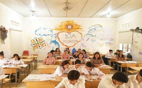 Một trong những nhiệm vụ trọng tâm năm học 2023-2024 đó là thi đua lập thành tích chào mừng kỷ niệm 70 năm chiến thắng Điện Biên Phủ gắn với hoạt động và tình hình thực tế của mỗi cơ sở giáo dục. Trong điều kiện các trường đang tập trung nhân lực và các điều kiện chuẩn bị cho Lễ kỷ niệm 70 năm Chiến thắng lịch sử Điện Biên Phủ, nhưng không vì thế mà chất lượng giáo dục, đặc biệt chất lượng thi TN THPT năm 2024 không đạt chỉ tiêu đề ra. Với mục đích tăng cường trao đổi nội dung sinh hoạt chuyên môn với các trường trong Cụm chuyên môn số 2, từ đó tạo mối quan hệ đoàn kết, giúp đỡ, chia sẻ về công tác chuyên môn; chia sẻ kinh nghiệm trong công tác ôn thi TN THPT, nâng điểm thi TN THPT năm 2024. để các trường hoàn thành tốt nhiệm vụ năm học. Buổi sinh hoạt chuyên môn diễn ra trong thời gian ½ ngày 6/4/2024, có 164 cán bộ quản lý, giáo viên ở 9 môn thi TN THPT, với các nội dung: Kinh nghiệm lãnh đạo, quản lý của Ban Giám hiệu về công tác ôn TN THPT năm 2024; bám sát vào các văn bản chỉ đạo của Sở Giáo dục cũng như những vấn đề khó khăn, vướng mắc cần được tháo gỡ của các nhà trường; phân tích, đánh giá cấu trúc, nội dung của  đề thi tham khảo năm 2024 của Bộ Giáo dục và Đào tạo theo các nhóm cấp độ câu hỏi, theo các chủ đề, khoanh vùng những nội dung kiến thức cơ bản và tích hợp các chủ đề để định hướng công tác dạy học, ôn tập, ôn thi; trao đổi phương pháp dạy học của thầy, phương pháp học của trò, kỹ năng làm bài của học sinh và các điều kiện để học sinh học tập; đưa ra các giải pháp để nâng cao chất lượng các bài thi TNTHPT  năm 2024; đặc biệt các giải pháp hướng đến đối tượng học sinh yếu, kém; tổ chức dạy thực nghiệm tiết ôn tập, ôn thi.