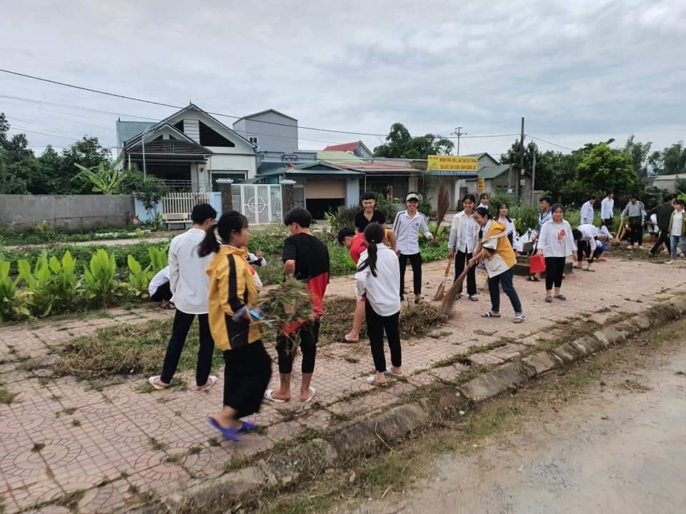 Đoàn thanh niên nhà trường tổ chức lao động tạo môi trường xanh-sạch-đẹp từ các ngõ phố vào trường.